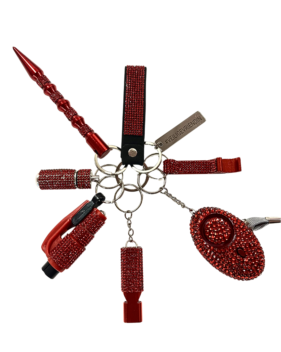 Deze speciale Veilige Vriendin zelfverdediging sleutelhanger heeft de volgende producten: