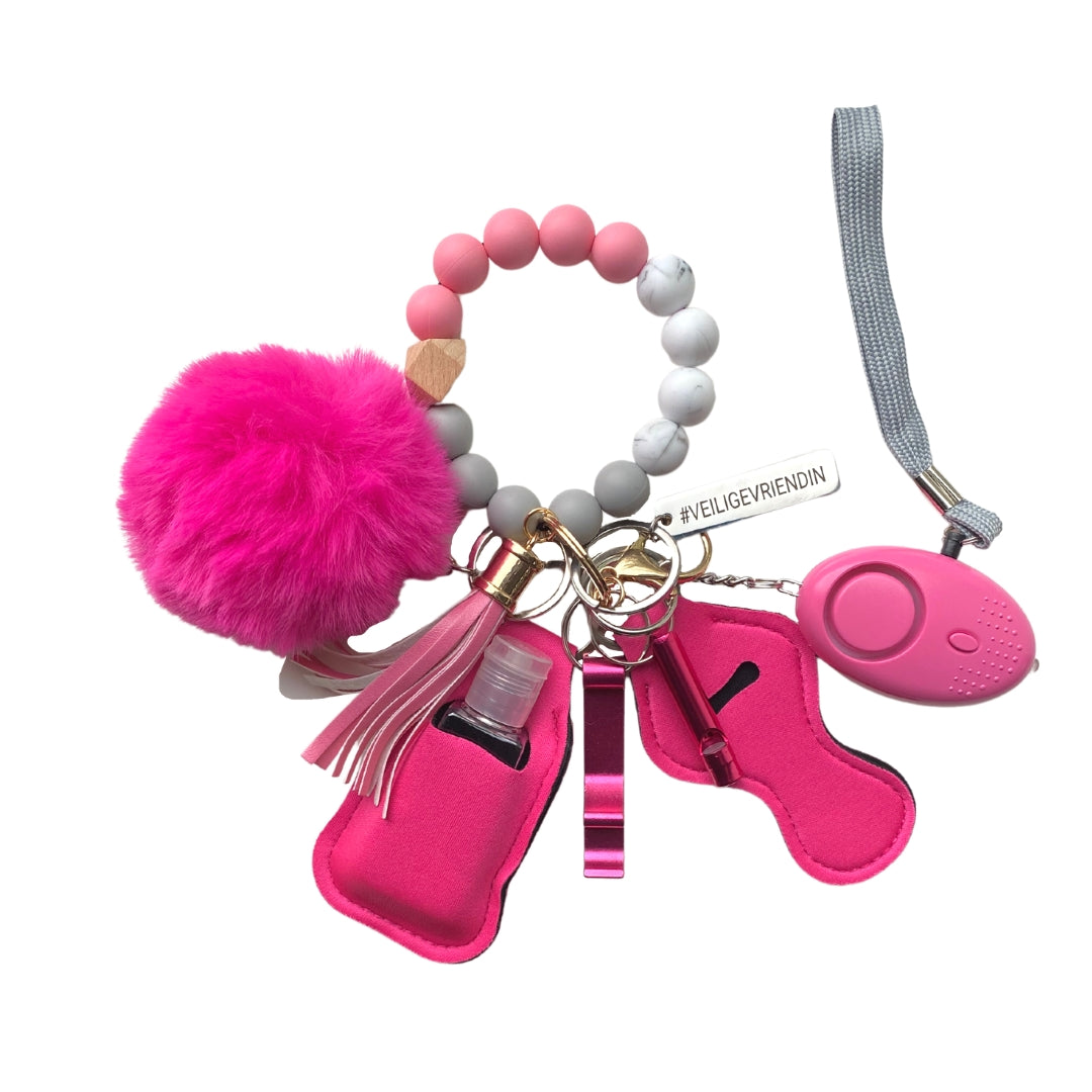 Deze speciale Veilige Vriendin zelfverdediging sleutelhanger heeft de volgende producten: