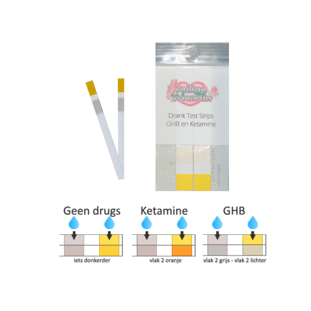 Zeker weten of jij geen verkrachtingsdrug (GHB of Ketamine) in je drankje hebt vriendin? Heb standaard Vriendin Strippie bij je en bescherm jezelf (en anderen) tijdens uitgaan, festivals en feesten!