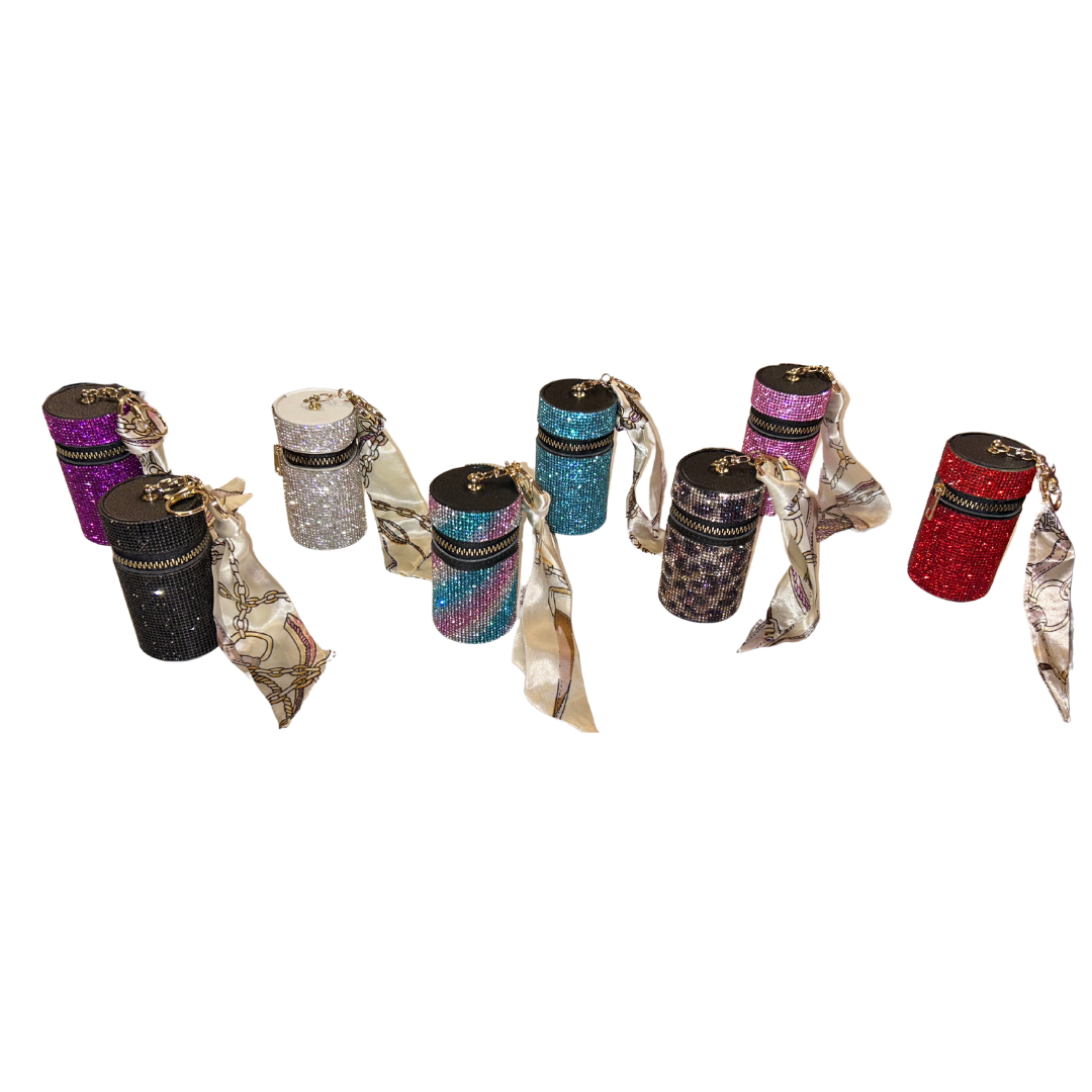 Hoe geweldig zijn deze glitter opbergkokers vriendin! Deze vakjes zijn enorm handig om kleingeld, pilletjes, een klein flesje parfum, sieraden of andere items in op te bergen! Aan de koker zit zowel een haak als een ringetje (goud) dus je kunt de koker gemakkelijk aan je Veilige Vriendin sleutelbos of tas hangen. Sjaaltje is inbegrepen!