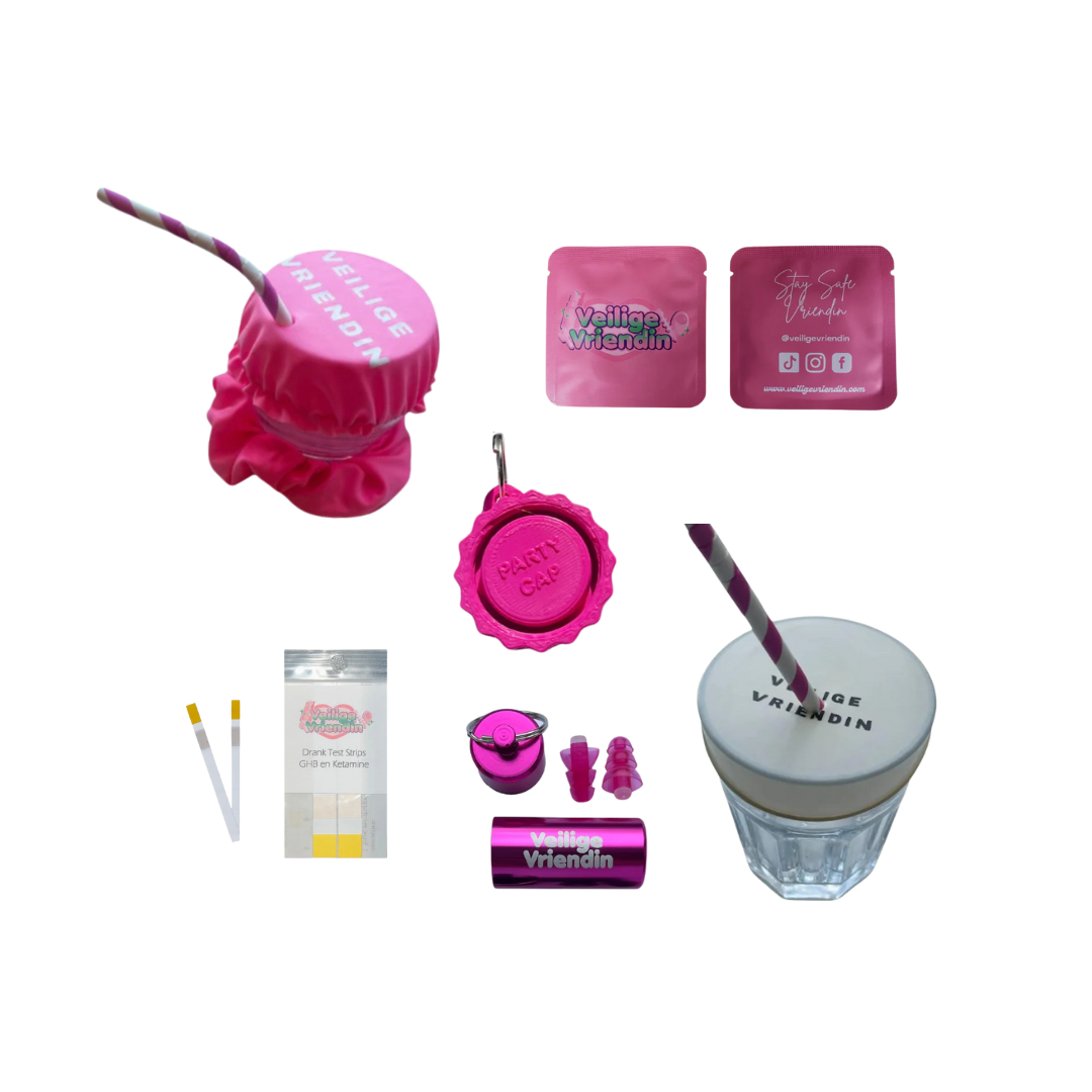 Bescherm jezelf of iemand die je lief is (perfect als cadeau)! Of je nu uitgaat, naar festivals gaat of feestviert, met deze bundel hoef je je geen zorgen te maken over drugs in je drankje en bescherm je je oren tegen harde muziek.
